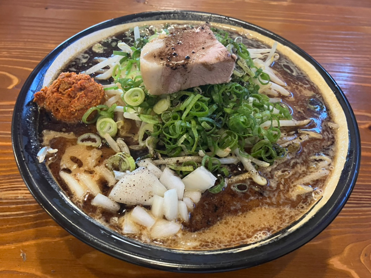 見た目は、その色合いから”ガツンとくる濃厚な味わい”を想像させますが、スープを一口飲むとその印象は鮮やかに覆されます。