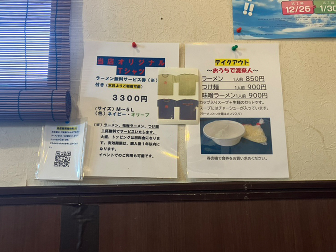 麺屋 渡来人のオリジナルTシャツを買うと、ラーメン無料サービス券が貰えます!