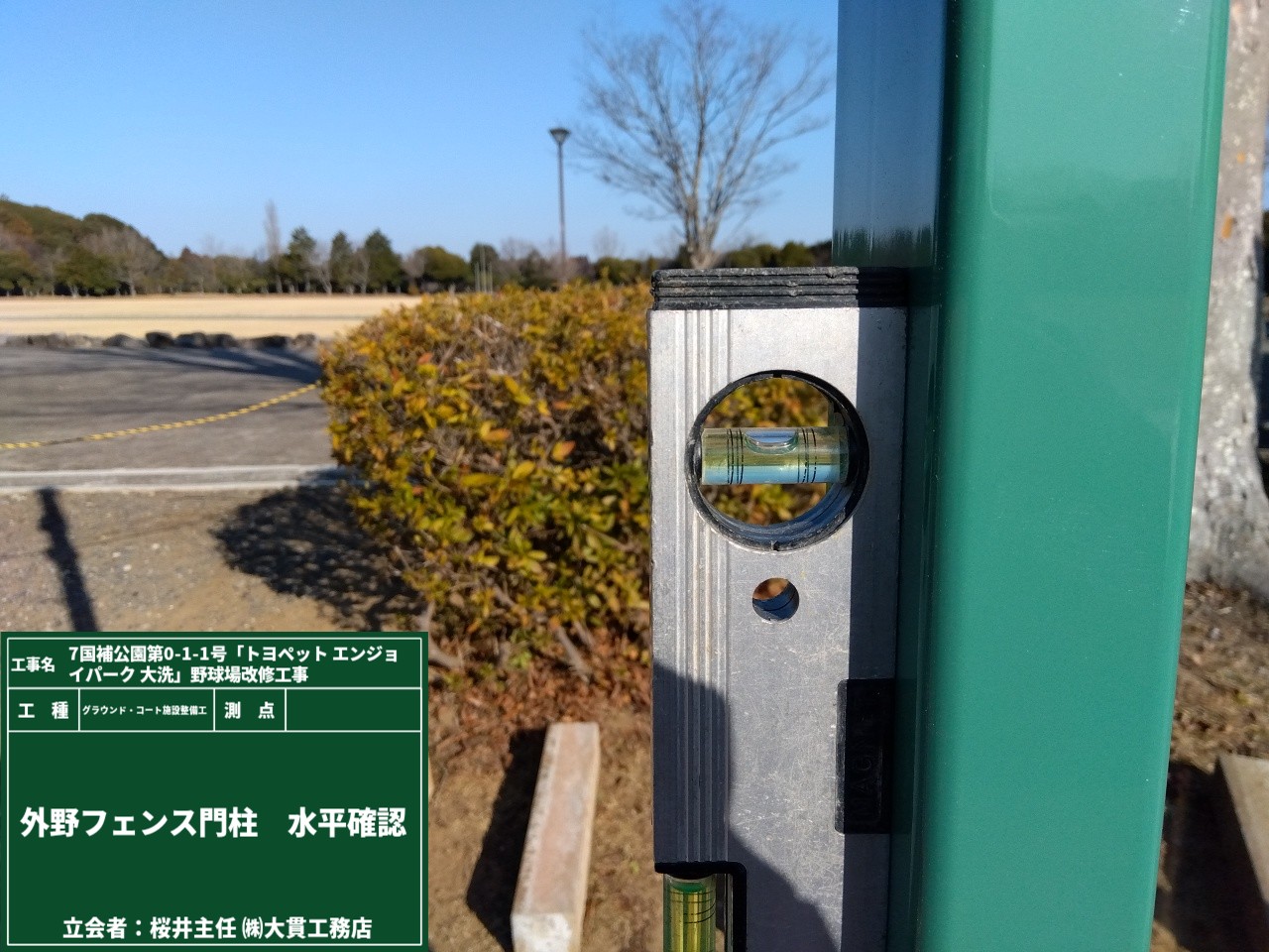 門柱が立ったら、最終的に水平・垂直の調整をして、安全性を確認します👀