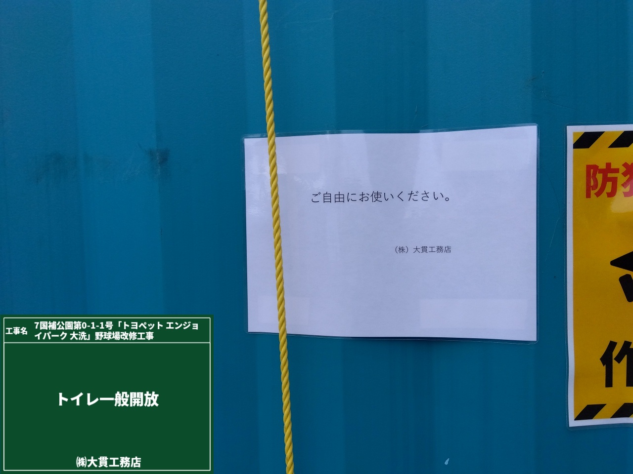 現場に設置している仮設トイレは、現場の作業員じゃなくても”どなたでもご自由に”使っていただけます!!