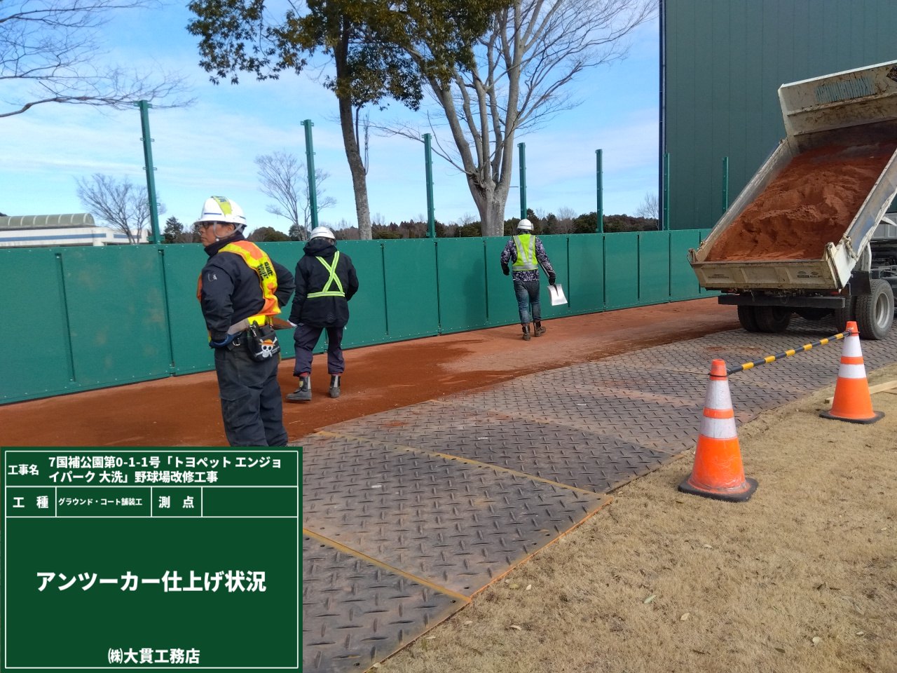 そのプラシキを設置して何をしているのかというと、フェンスの基礎になる部分の掘削作業と掘削した土の積込みです。